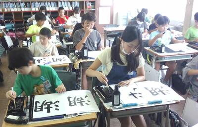 二学期も一生懸命習字の学習に取り組んでいる子どもたち。
