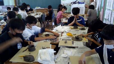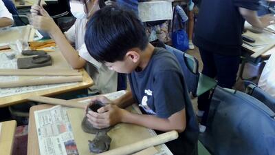 6年生は、図工の学習で信楽焼体験をしました。
