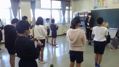 最後に楽器を使って簡単な合奏を一緒にしました。1学期に続いて、2学期も交流することができて、これまで以上に仲が深まりました。3学期の交流も楽しみです。