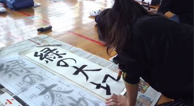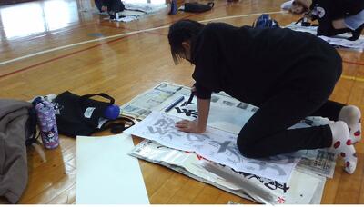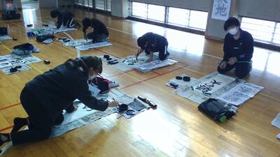 1月の冷え切った体育館で、精神を研ぎ澄まして、一画一画を丁寧に書くことができました。
