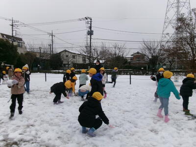 子どもたちは、友だちと協力して雪だるまを作ったり、雪合戦をしたりと、学年の垣根を越えて楽しく遊んでいました。