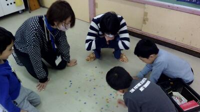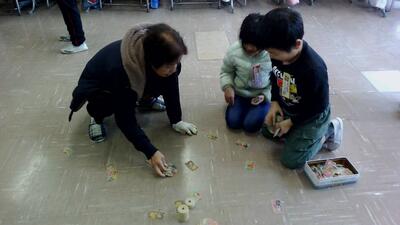 1年生の生活科「ふゆとともだち」の学習の一環で、「冬の遊び祭り」を行いました。コマ回しやけん玉など昔の遊びを中心に楽しみました。保護者の方にも協力していただき、遊びのコツや遊び方を教えてもらいました。遊びが上達した子も多く、とても楽しいお祭りとなりました。