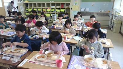 どの子も「美味しい!」と小学校の給食を味わっていました。