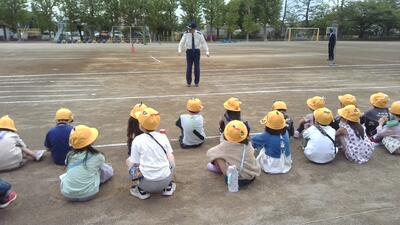 交通安全教室では安全な横断歩道の渡り方について学習しました。手の挙げ方や横断歩道を渡る前に確認することなど、丁寧に教えていただきました。これからの安全な登下校に活かせるといいですね。