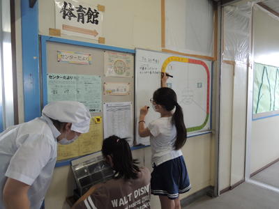 配膳員さんに見守られながら、給食委員の皆さん大活躍。