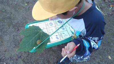 秋の葉っぱ、木の実、虫など、たくさんの自然に触れることができました。