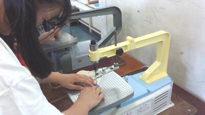 今、図画工作の授業では、糸のこを使って板を切り、作品をつくっています。初めて糸のこを扱う5年生ですが、安全な使い方を確かめ何回か板を切ると要領を掴んだようで、楽しみながら活動に取り組んでいます。切った板に色を塗って、組み立てていきます。どんな作品が出来上がるのかが楽しみです。