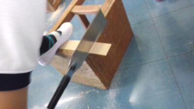 今日の図工は「のこぎりザクザク」で木を切りました。
