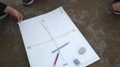 午前、お昼、そして午後に校庭へ。時間がたつにつれて、太陽の向きが変わり、それに合わせて影の向きが動くこと、そして長さが変わることを、実際に自分の目で確認できました。