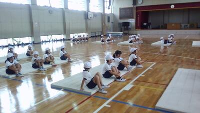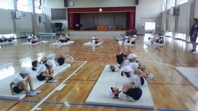 今回は1回目の授業ということで、準備や後片付けのやり方や慣れの運動を行いました。