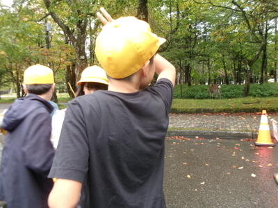 ホテル付近に到着すると鹿に出会いました!野生の鹿を見て子どもたちは大興奮です。