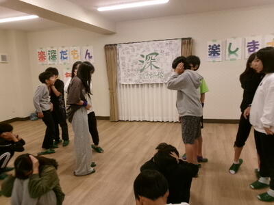 昨年度、大貫で踊った「ジンギスカン」で心と体を温めたあと、レク係による進行で、じゃんけん列車、伝言ゲーム、フルーツバスケット、ヨガなど様々なゲームを1時間ほど行いました。